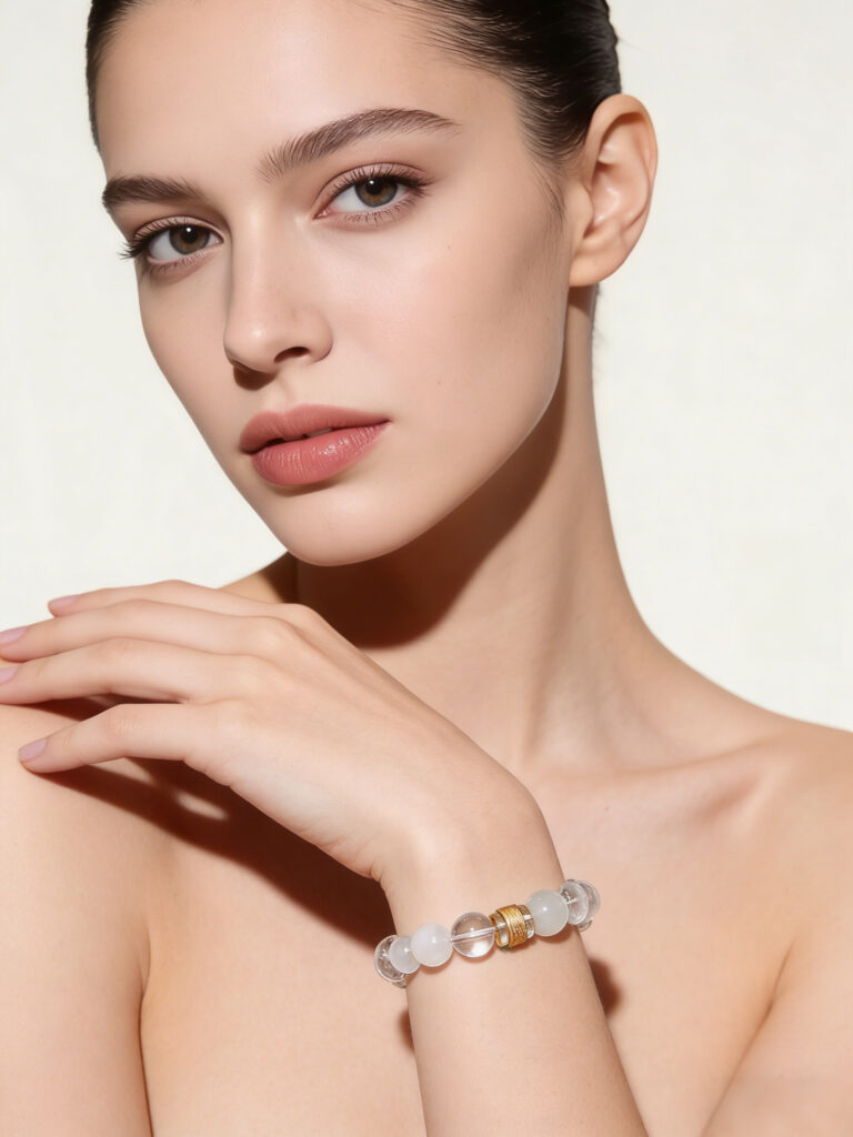 Natural White Crystal Moonstone Phantom Wealth Bracelet Samantabhadra Theme Spiritual Healing Jewelry for Women