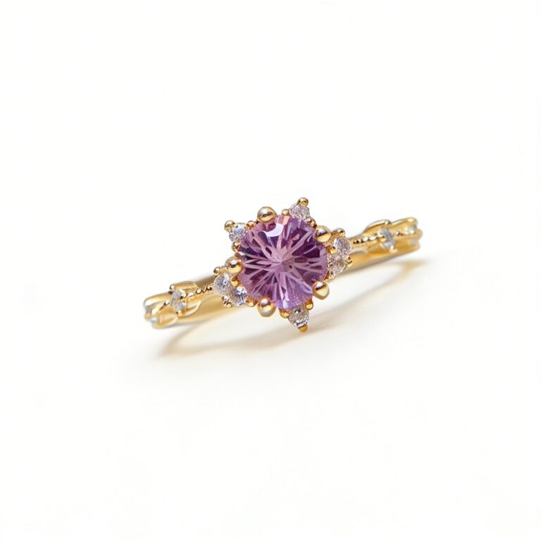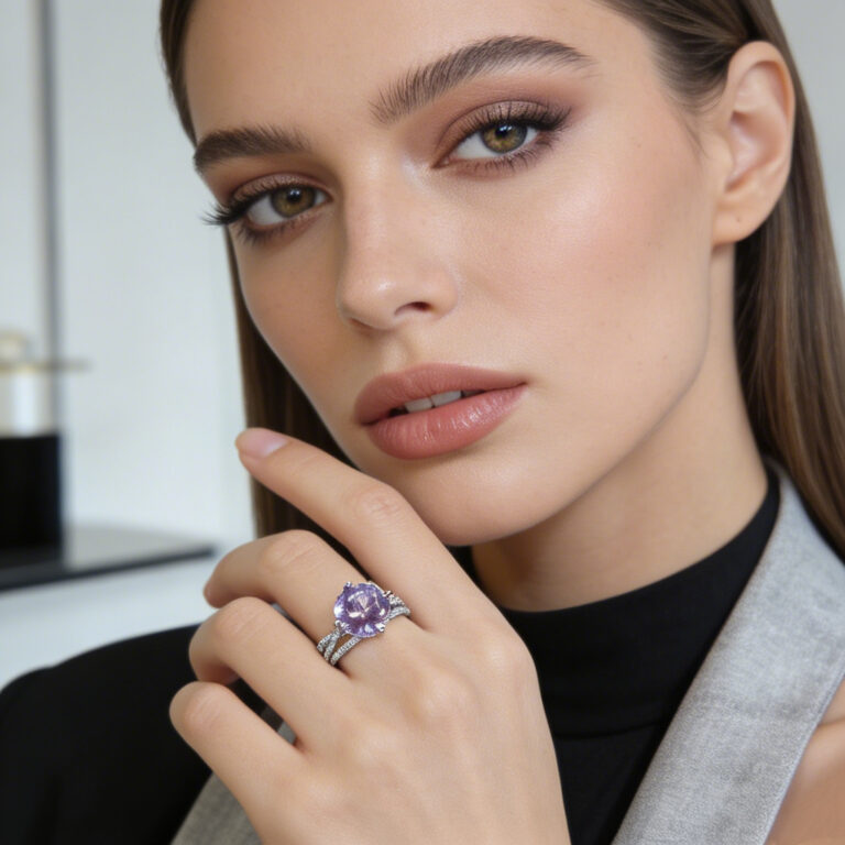 Vintage Luxury Natural Colored Gemstone Ring for Daily Wear & Date, Light Purple, Micro – setting, S925 Silver