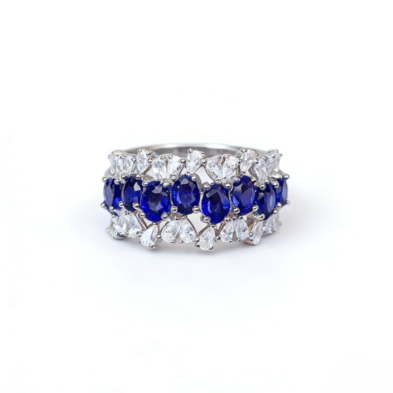 Noble Emperor Blue Natural Sapphire Ring – Royal Blue, Zircon-Embellished S925 Silver, Perfect for Formal & Luxury Occasions