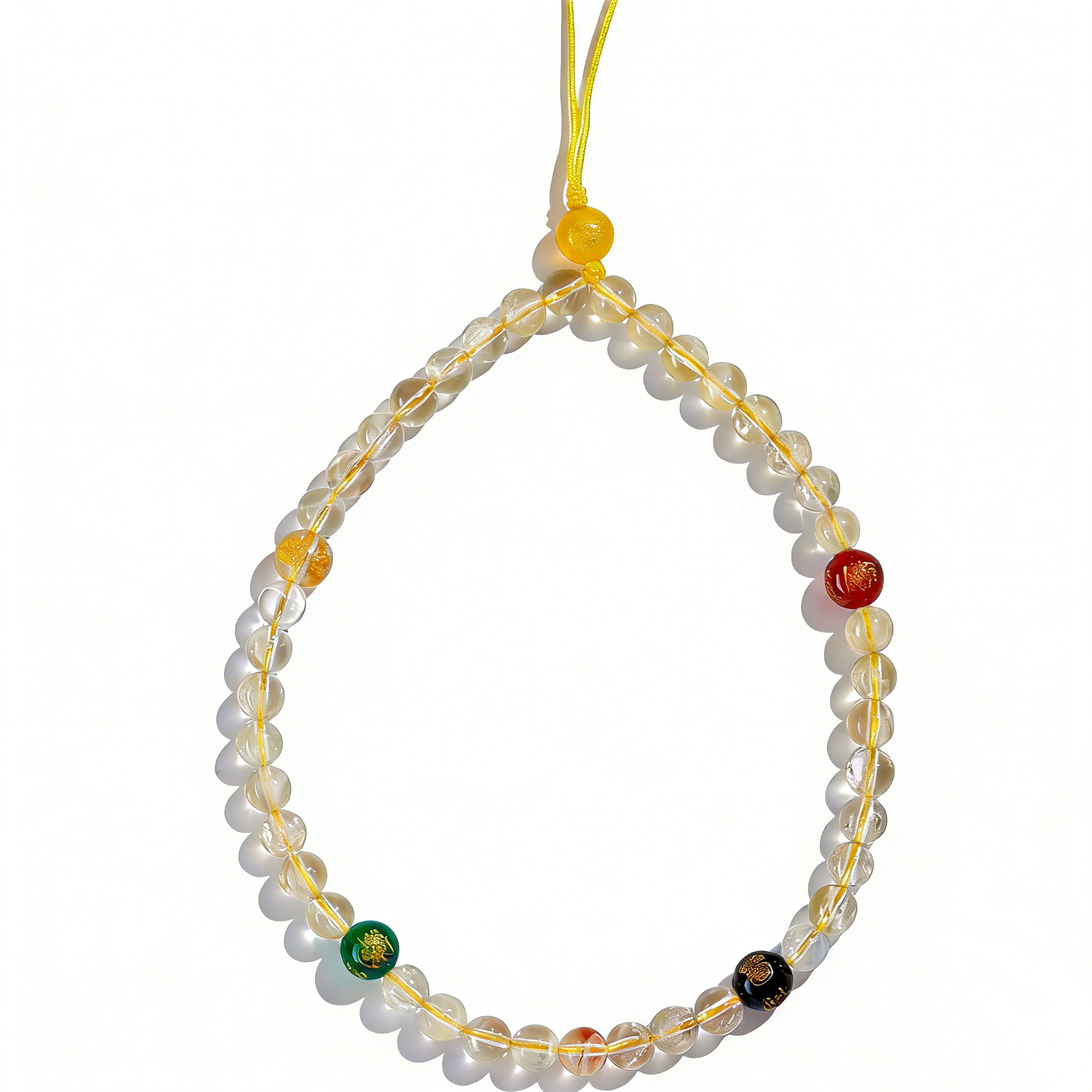 Minimalist Luxury Natural Yellow Crystal Five God of Wealth Handcrafted Beaded Phone Lanyard