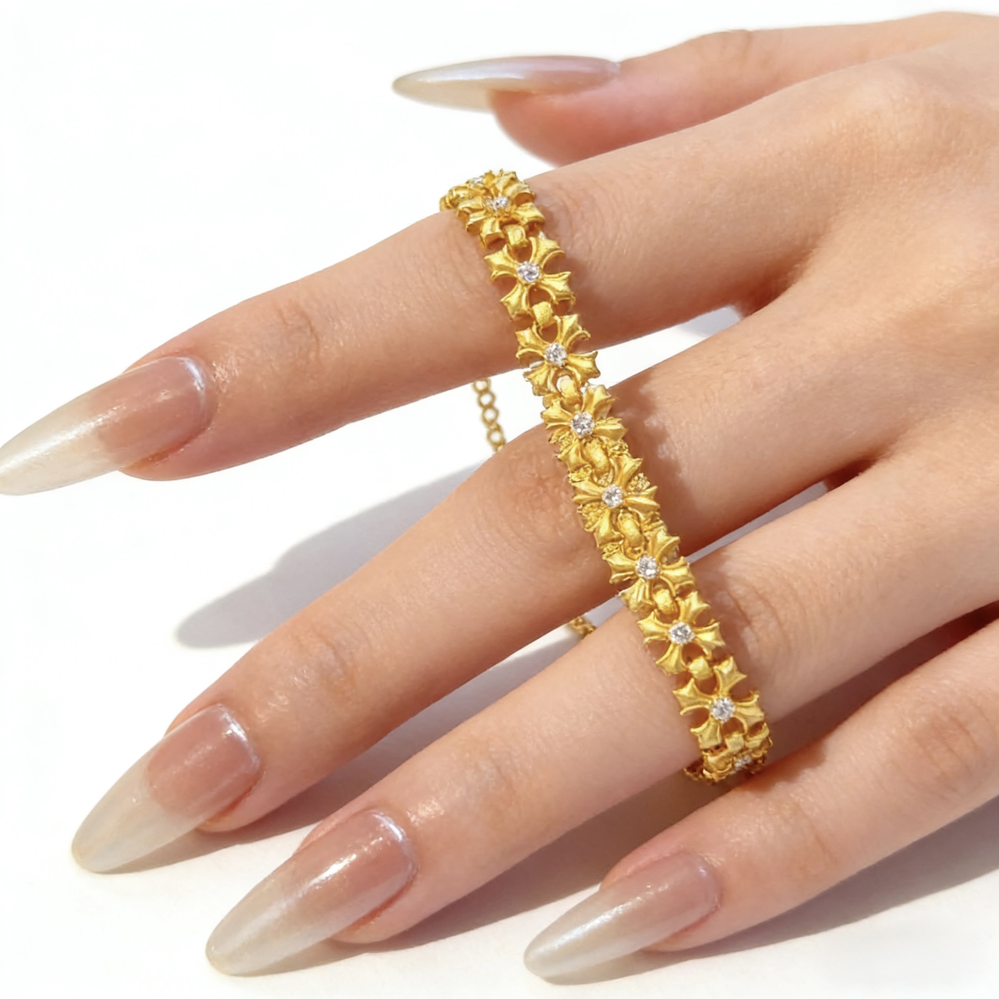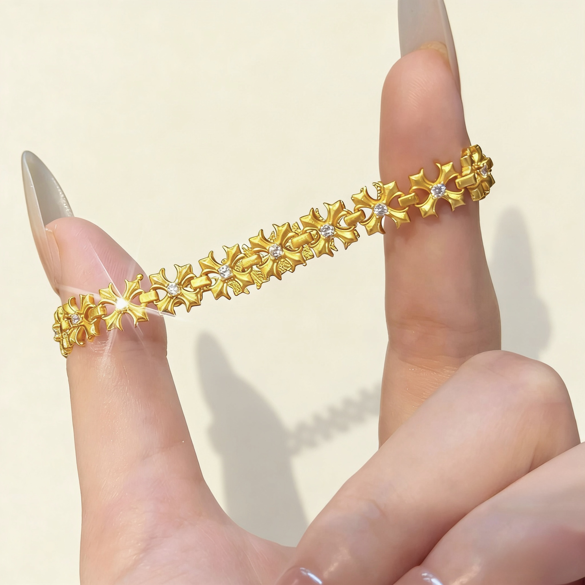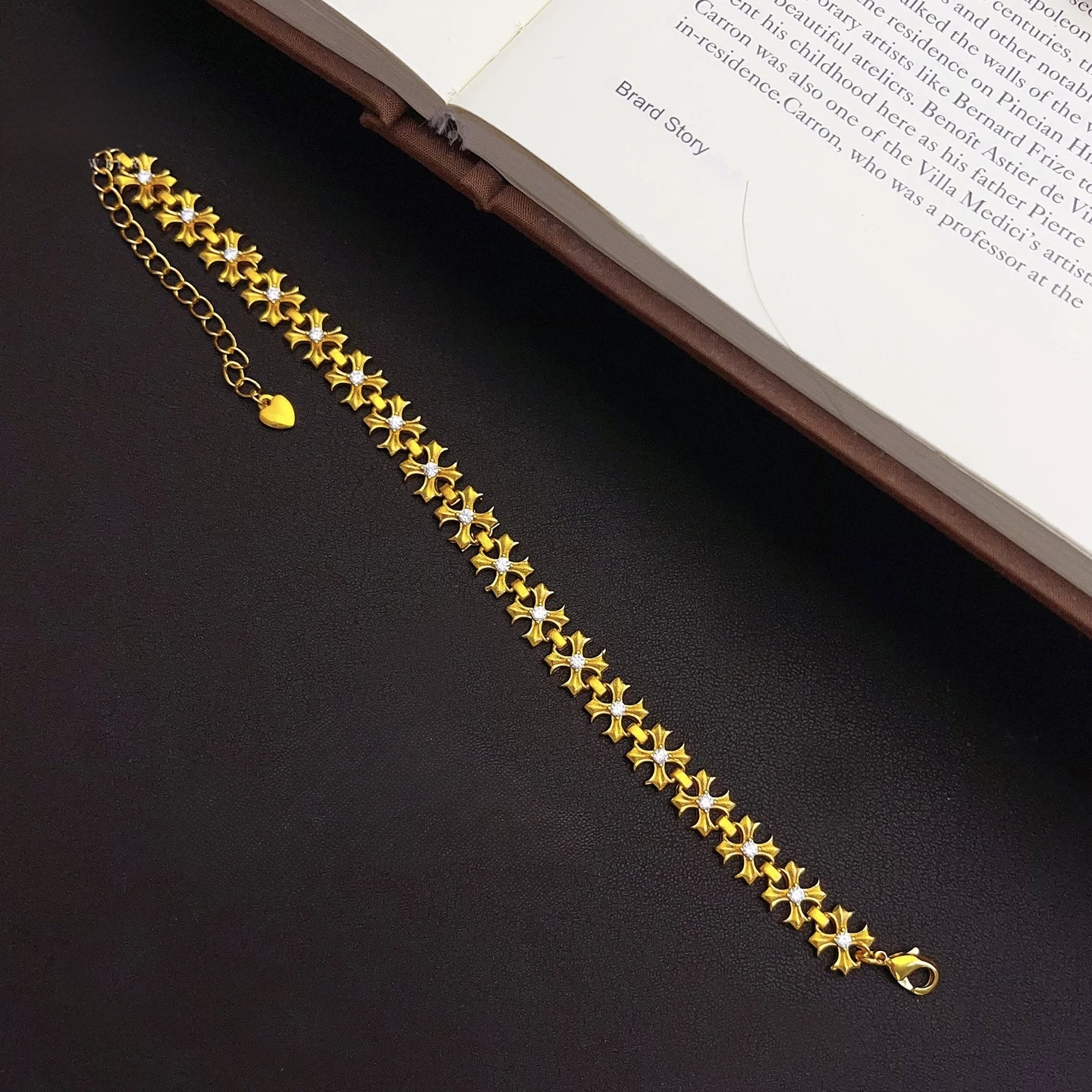 24k Sand gold ancient cross flower diamond bracelet fashion design high-end diamond cross hand jewelry