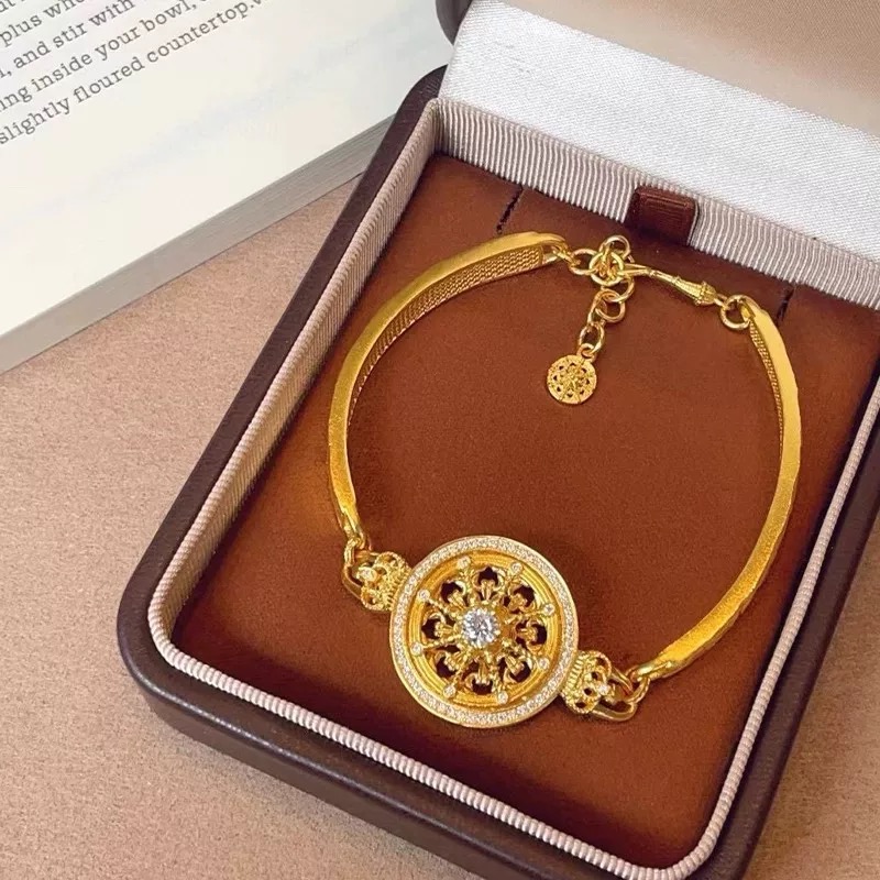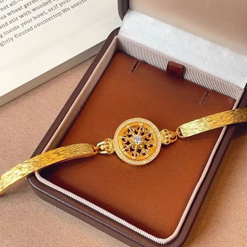 24k sand gold dot zircon lucky crown carriage compass bracelet is hollow and can be rotated to give the round bracelet to your girlfriend