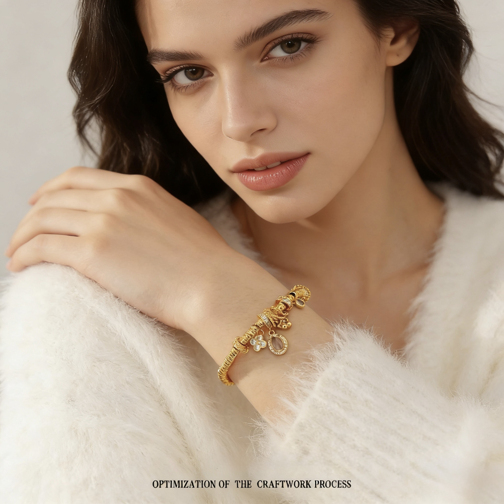 Be the first to review “24k sand gold white zircon pigeon egg four-leaf clover coil wrapping bracelet fashion jewelry” Cancel reply