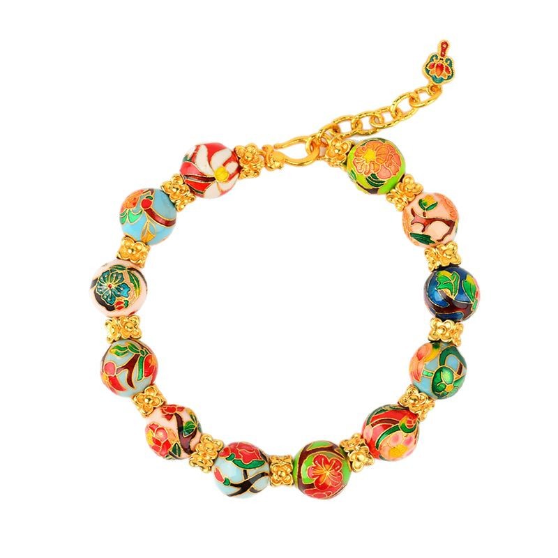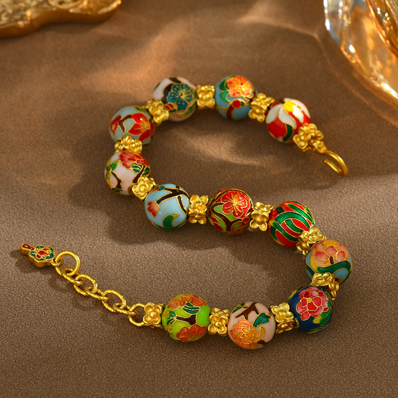 Ancient high-temperature fired blue enamel December Flower God Pearl Gold Sand Bracelet, Cloisonné Guardian Flower Pearl Bracelet