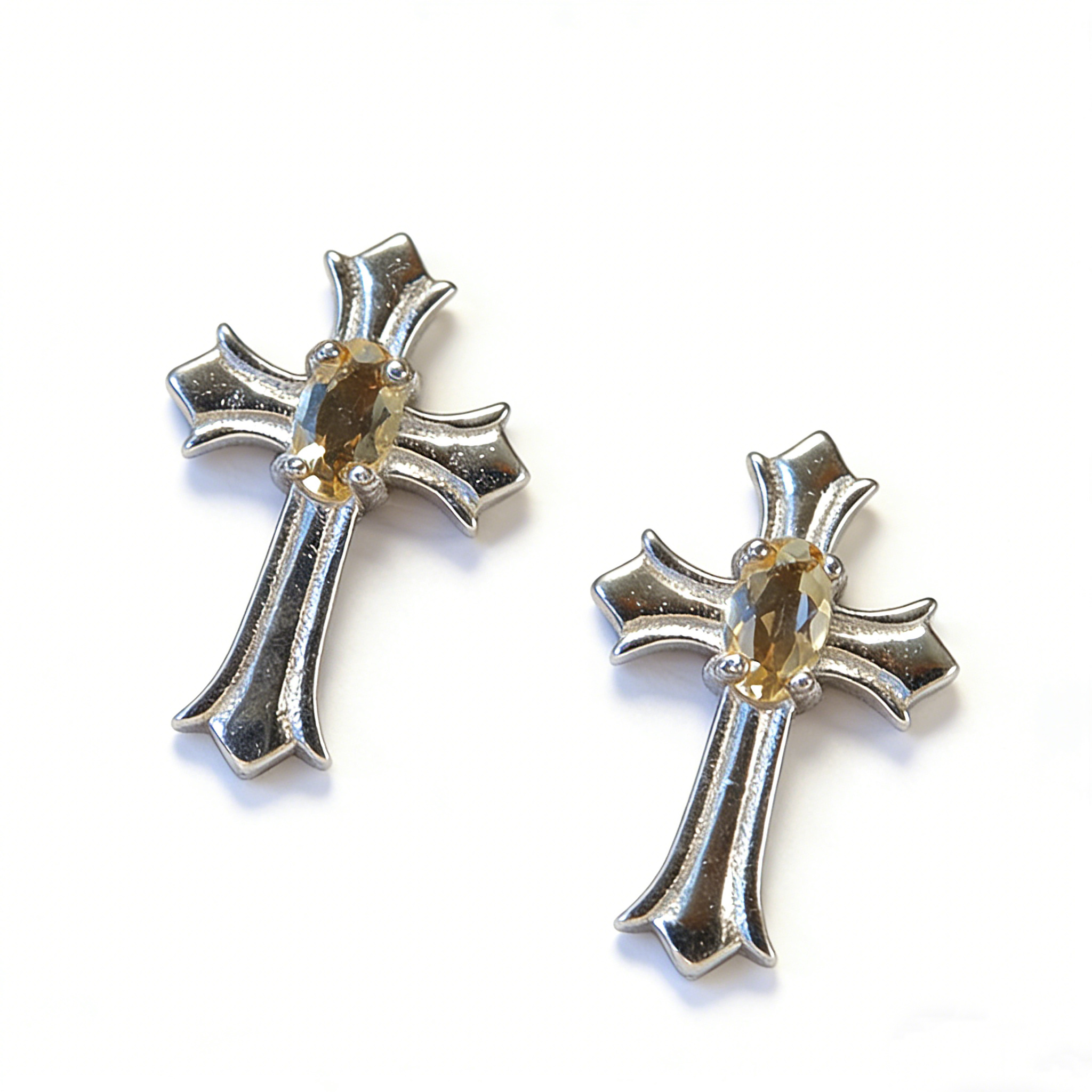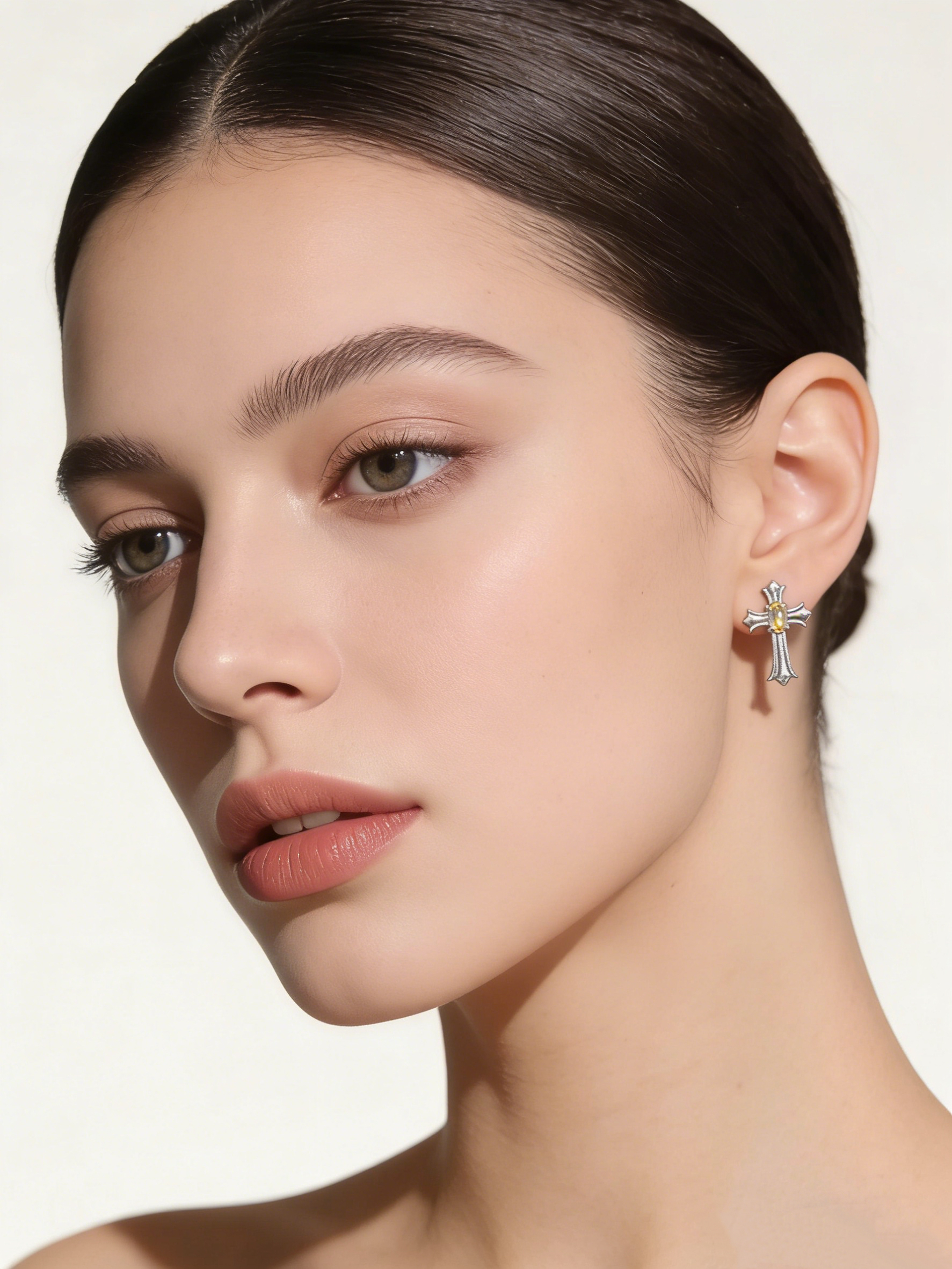 In Western culture, the cross has long been a symbol of love, sacrifice, and rebirth, representing the profound spiritual beliefs of Christianity. Natural citrine is known as the “merchant’s stone” in Western crystal culture, believed to bring wealth, confidence, and positive energy, helping people overcome difficulties and achieve their goals. Moonstone, on the other hand, is regarded as a stone of intuition and protection, which can enhance people’s perception and guard against negative energy. The design of these cross earrings combines the symbolic meaning of the cross with the unique properties of natural crystals. The simple and understated cross shape, paired with the sparkling natural citrine and moonstone, not only showcases the fashion sense of the minimalist style but also conveys the wearer’s pursuit of spiritual beliefs and positive energy.