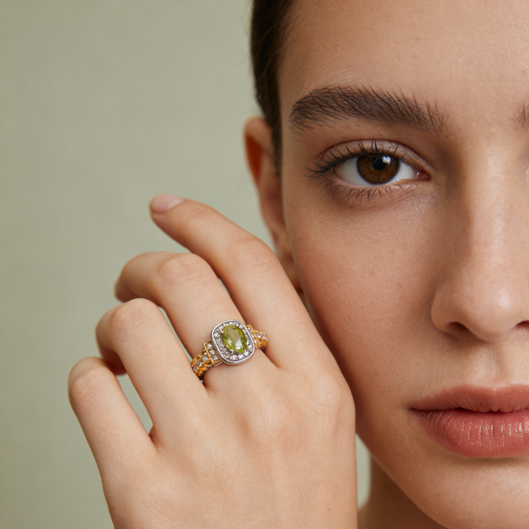 Design natural peridot women’s ring set with S925 silver