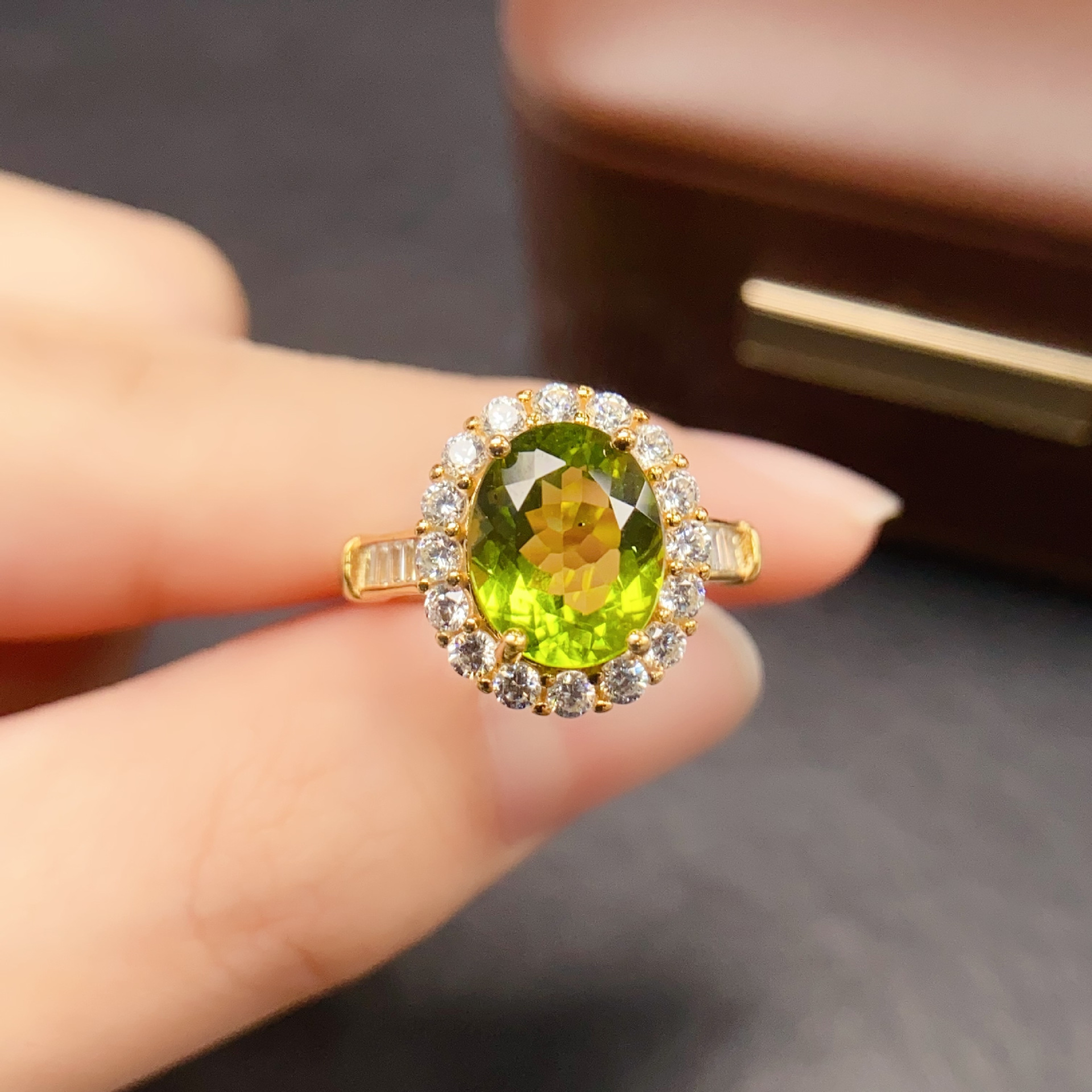 In Western jewelry culture, peridot has been revered as the “Gem of the Sun” since ancient times. In ancient Egypt, it was believed to possess the power of the sun, capable of dispelling evil, banishing the fear of the night, and bringing light and hope to the wearer. The “Emerald Wonderland” design of this ring draws inspiration from the classic Western fairy tale The Wonderful Wizard of Oz, a symbol of vitality, hope and adventurous spirit. The oval peridot at the center represents the lush green wonderland full of life, while the surrounding silver-inlaid small diamonds mimic the sparkling dewdrops in the forest, echoing the ancient belief that peridot can bring peaceful energy and harmonious happiness. This design combines the historical symbolism of peridot with the fairy-tale meaning of the wonderland, creating a piece that not only adorns the hand but also carries the blessing of eternal hope and joyful life.