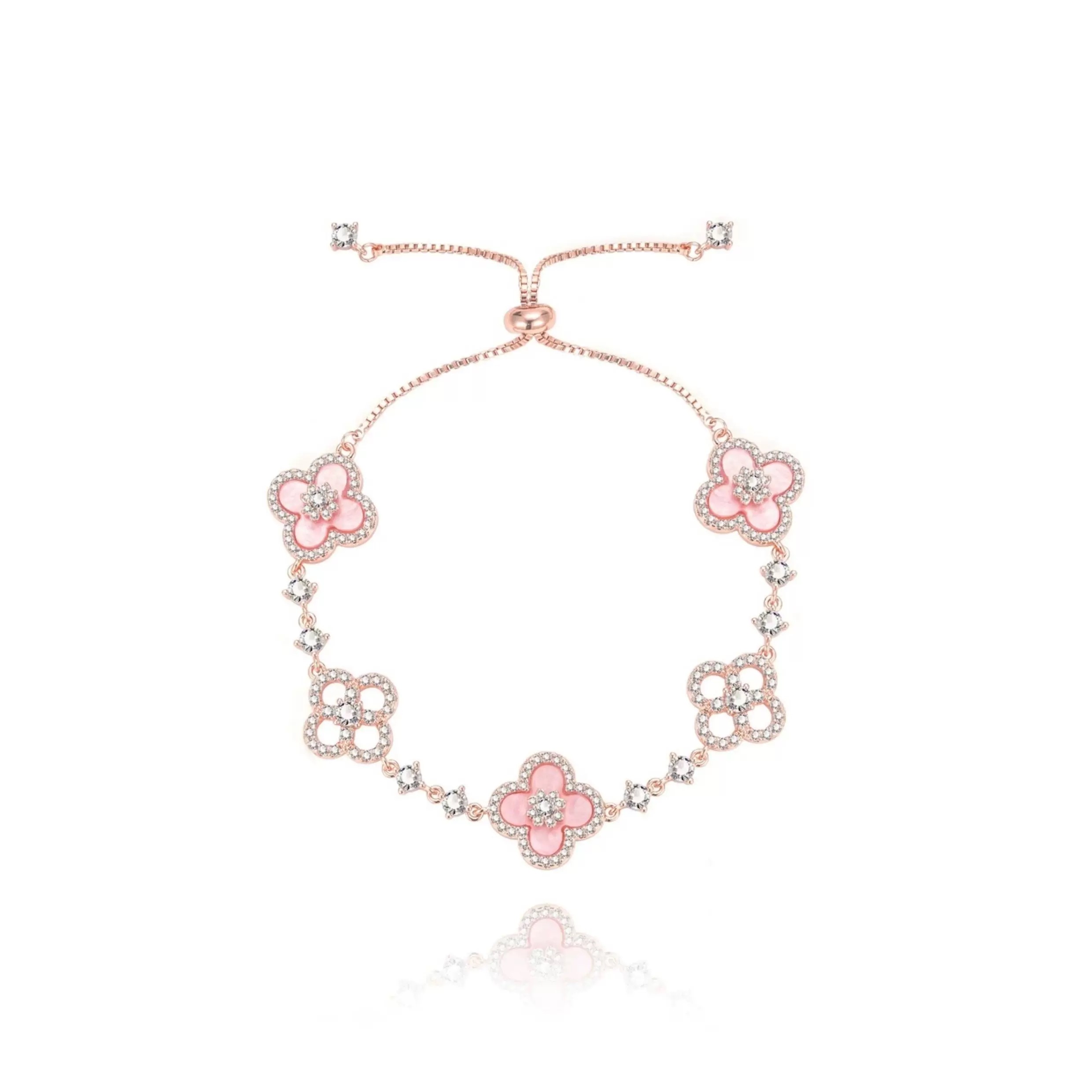 Fashion lucky four-leaf clover natural fritillary pull-out bracelet women’s light luxury high-end flower hand ornament bracelet accessories