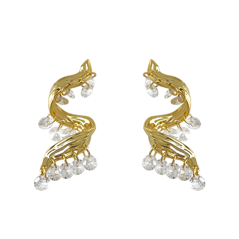 Flash! Original thick plated 18k real gold fringed zircon earrings, light luxury and high-end temperament silver needle earrings