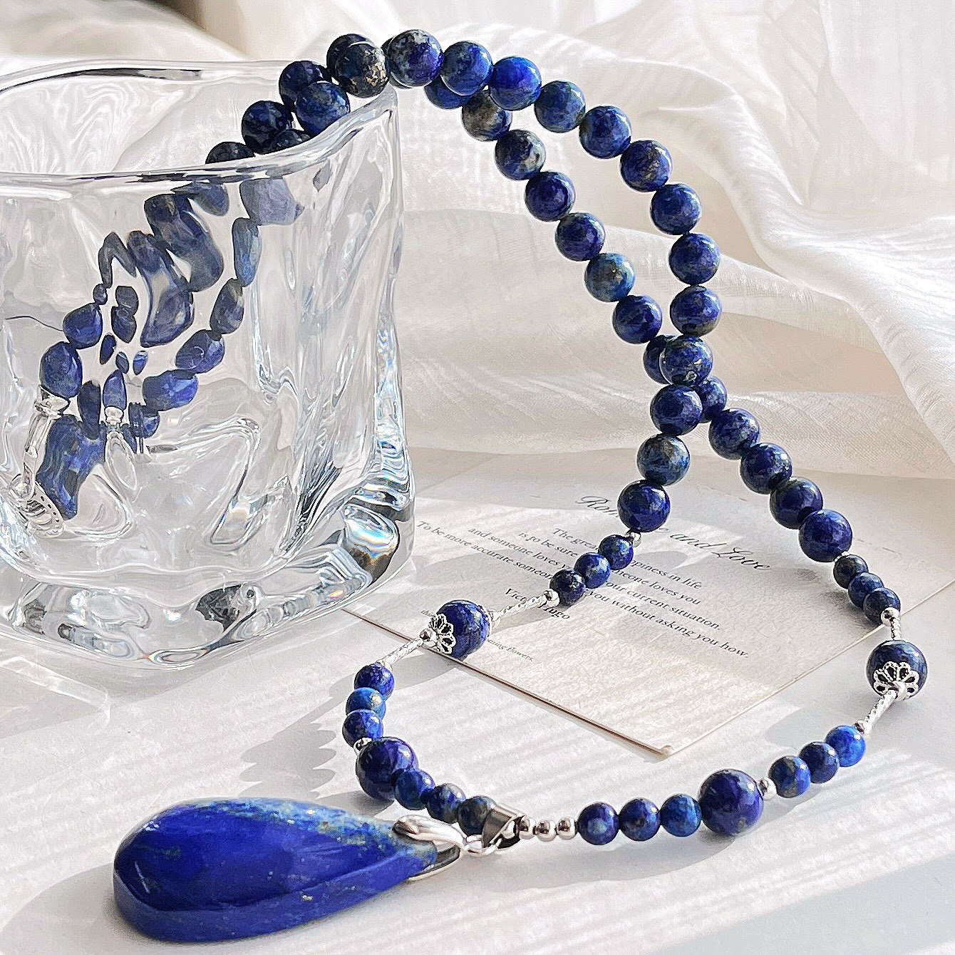 High-quality natural lapis lazuli sweater chain necklace, clavicle chain