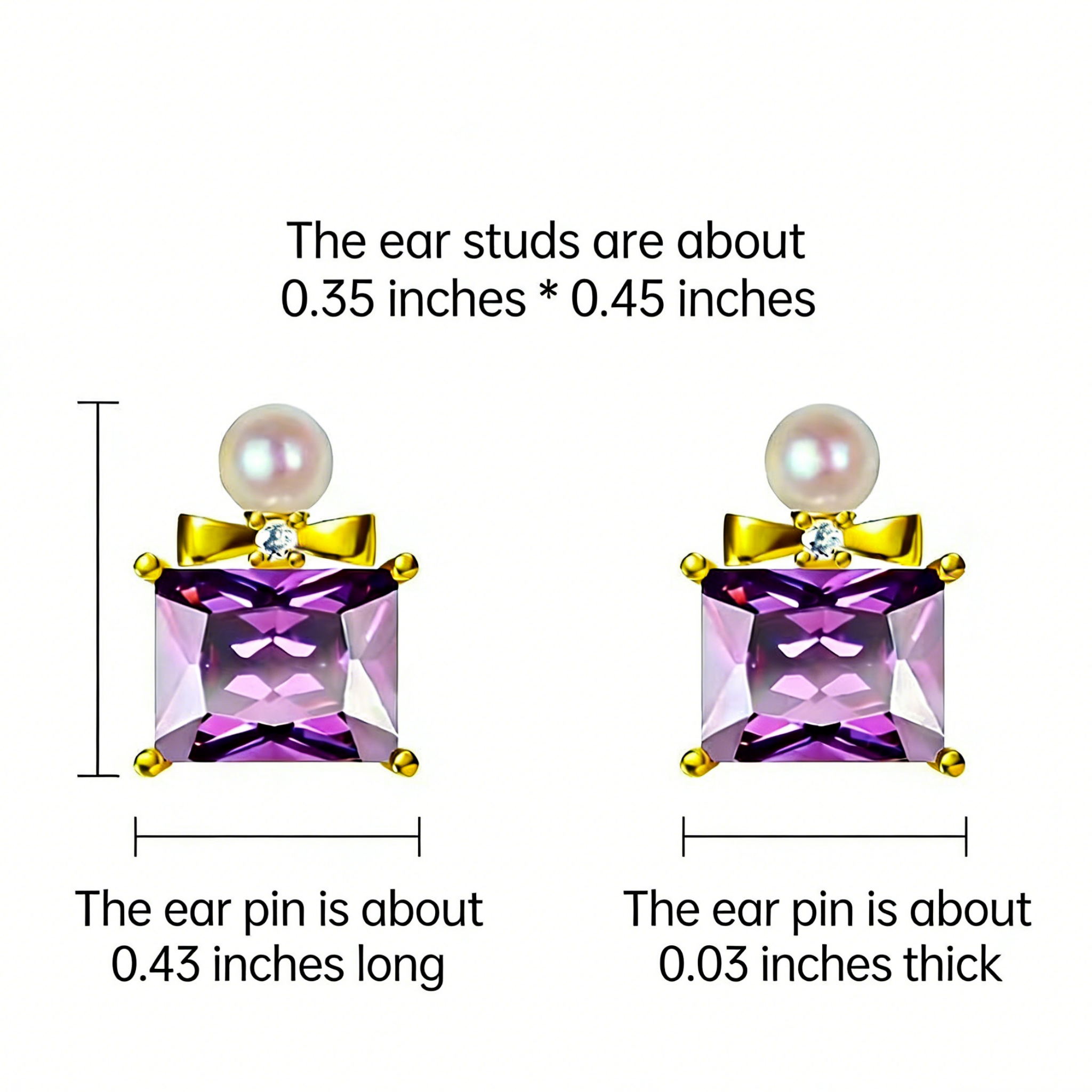 These earrings are crafted with high-quality S925 silver, plated with 18K gold to ensure a long-lasting, luxurious luster that won’t fade easily. The main stone is a carefully selected square-cut amethyst, which has a deep and vivid purple color, paired with sparkling zircon stones that add extra brilliance, and a delicate freshwater pearl on the top, creating a three-dimensional vintage perfume bottle shape. The gold-plated frame is polished to a smooth finish, ensuring comfortable wear without irritating the skin, and the secure stud back design keeps the earrings in place throughout the day.