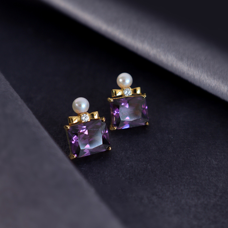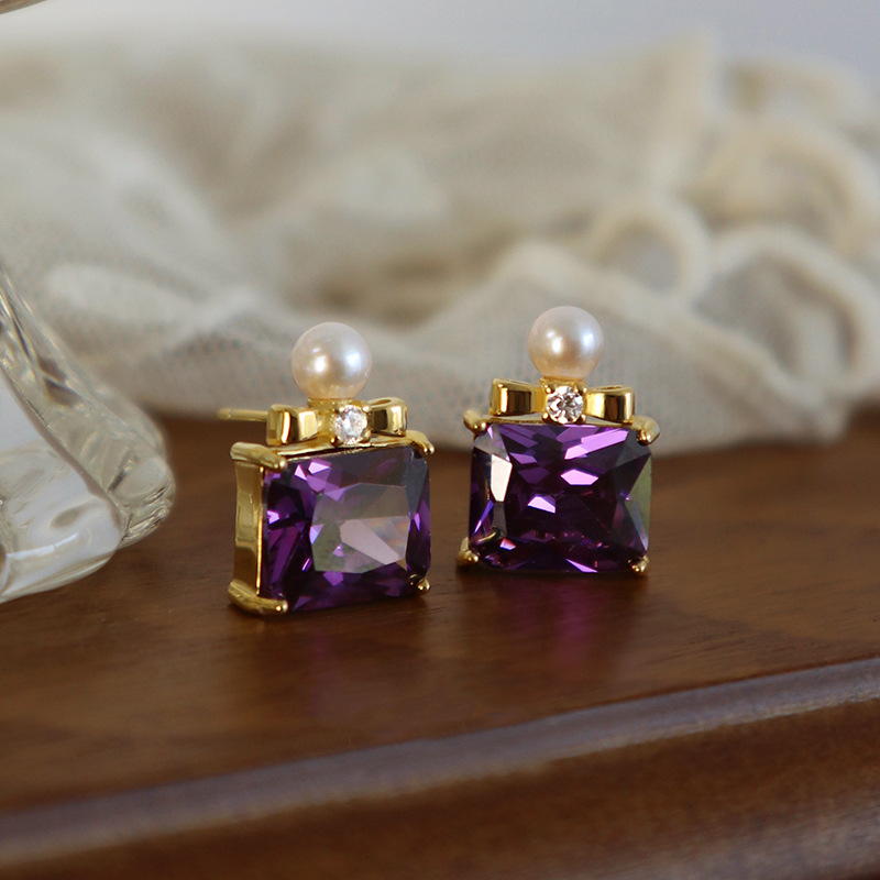 Be the first to review “Luxury Elegant Square Crystal, Pearl & Bowknot Stud Earrings For Evening & Daily Wear, Vintage Perfume Bottle Design, 18K Gold Amethyst, Zircon & Pearl Earrings”