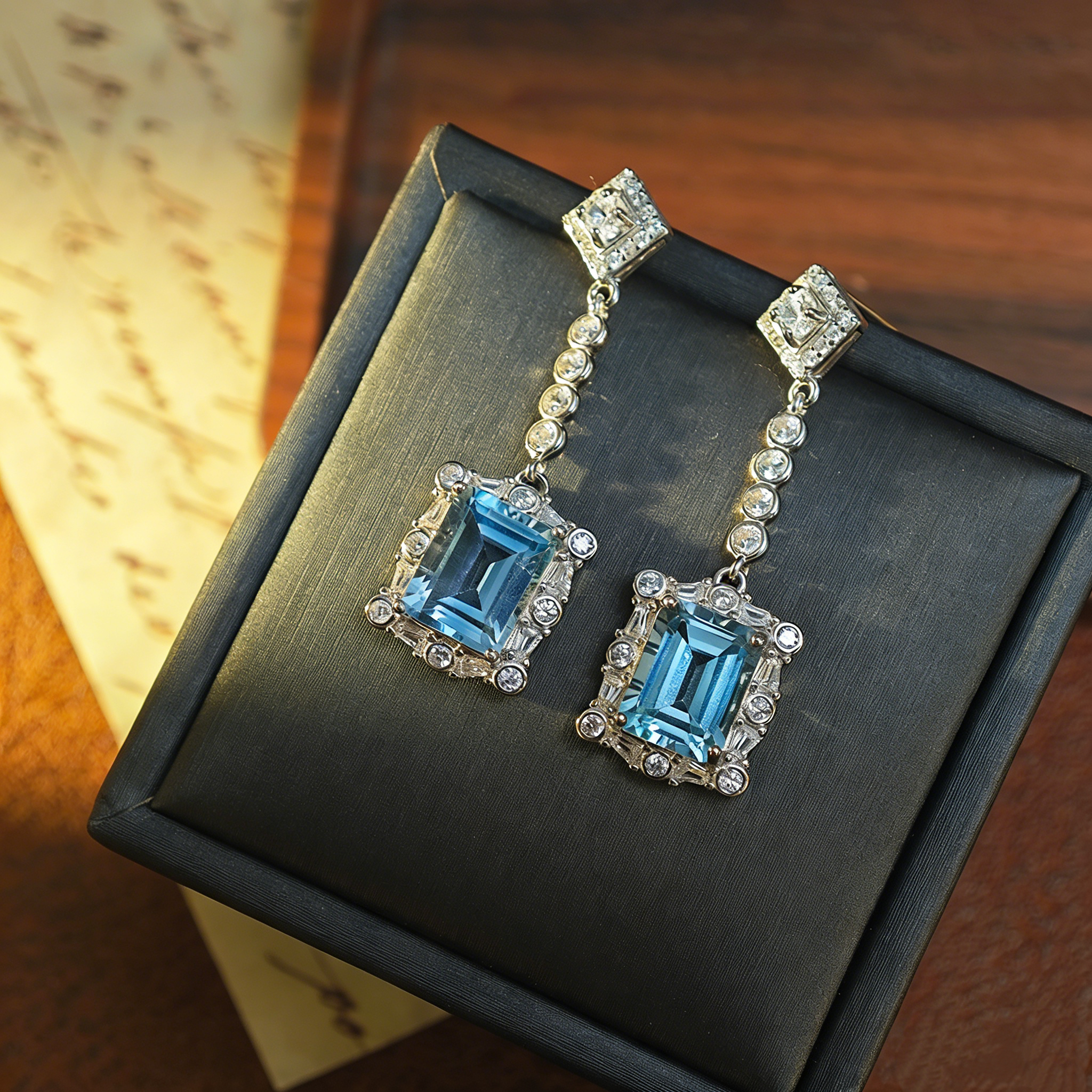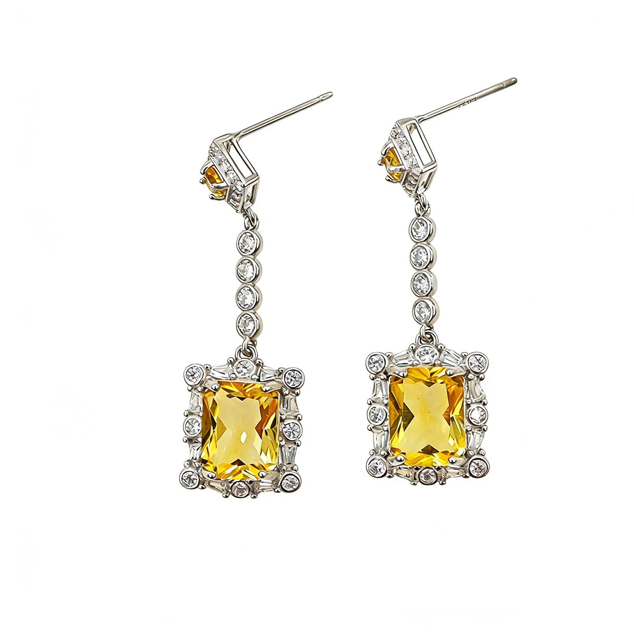These drop earrings are crafted from high-quality S925 silver, featuring natural citrine, amethyst, and topaz in a multi-color design. Each gemstone is carefully cut and securely inlaid, with a delicate chain connecting the small accent gem to the main stone, creating an elegant dangling silhouette that flatters any face shape. The silver setting is polished to a brilliant shine, ensuring durability and a luxurious look.