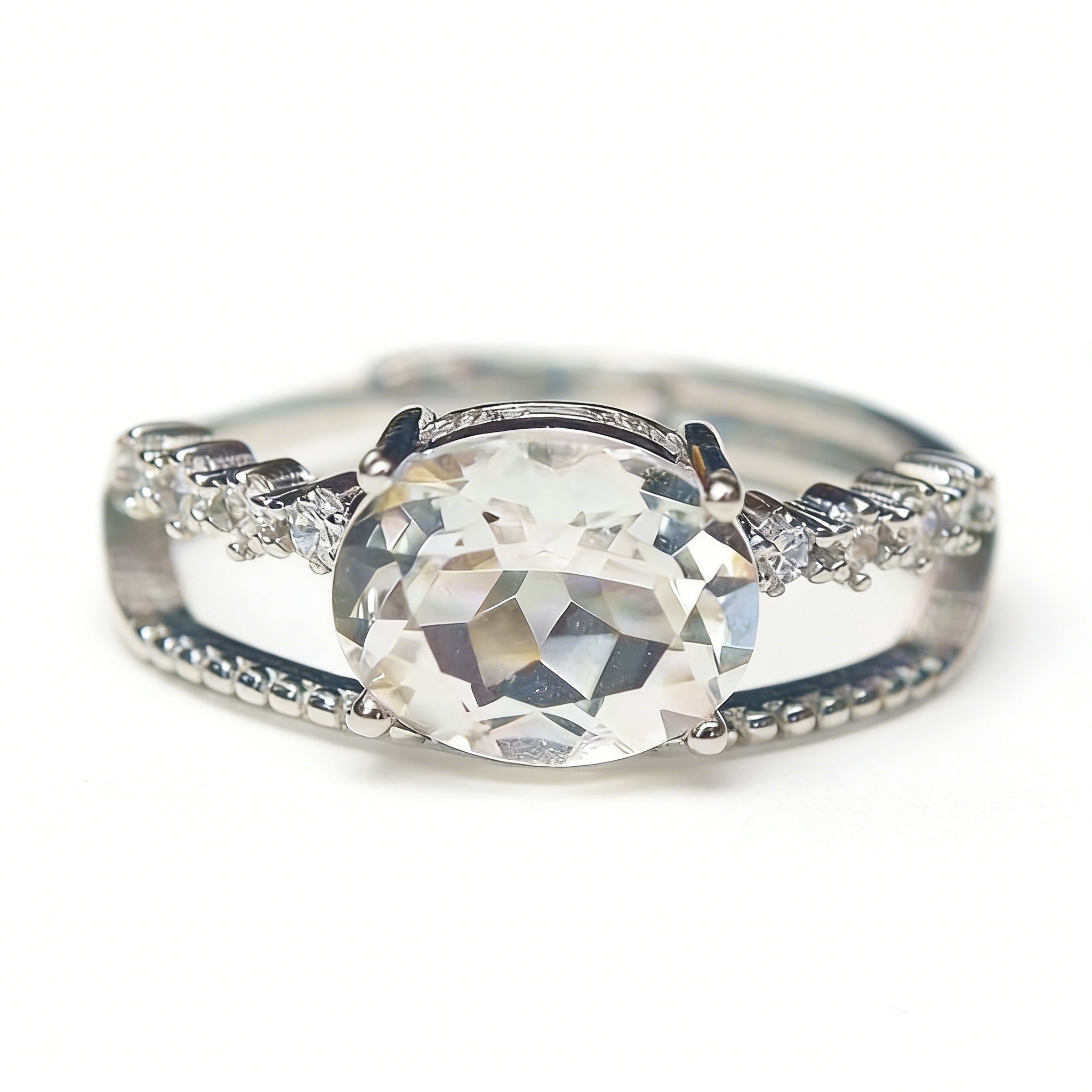 Natural colored gemstone king white crystal ring inlaid with S925 silver light luxury high-end