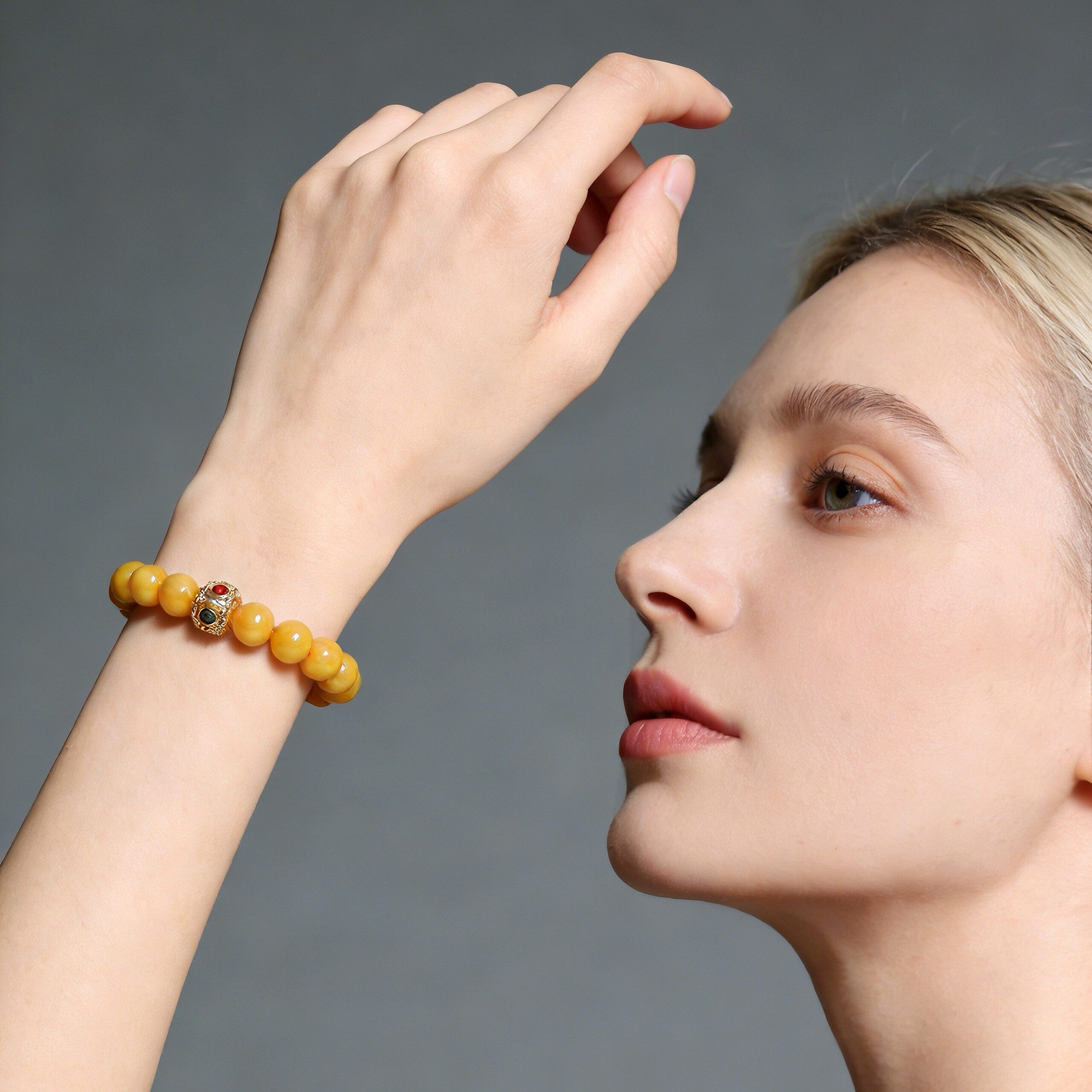 Natural old beeswax bracelet 18K bracelet high goods chanterelle yellow bleached flower bracelet