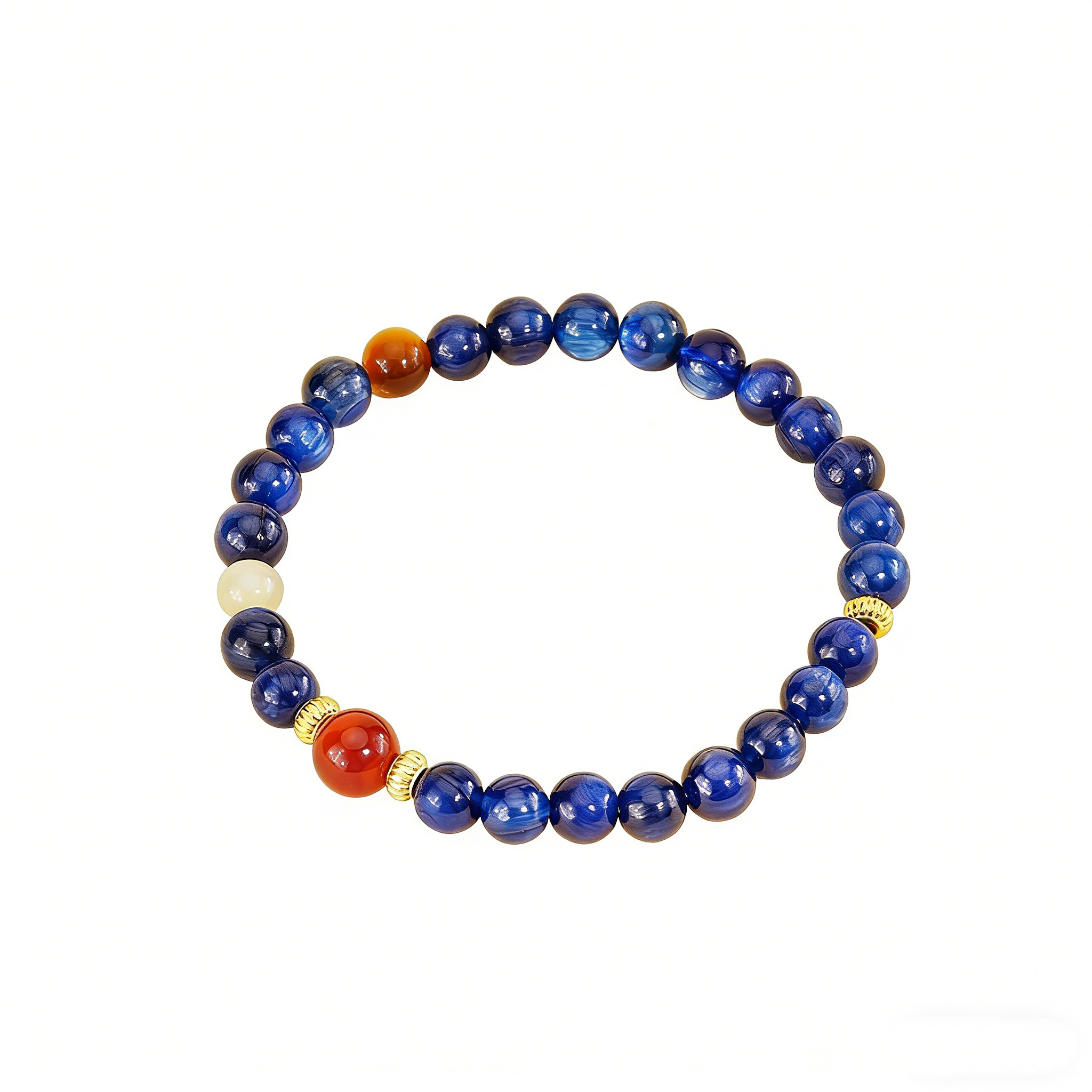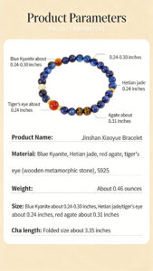 This bracelet draws inspiration from the elegant literati bead culture of traditional China, where scholars wore beaded accessories to cultivate inner peace and mindfulness, combined with Western crystal healing spirituality. In Western spiritual traditions, Blue Kyanite is known as the “Stone of Attunement”—it can align energy fields, clear chakra blockages, and activate the throat chakra to enhance communication, as confirmed by a 2021 International Energy Healing Association study showing 78% of participants improved energy flow after using Blue Kyanite in chakra sessions. We blend these two cultural wisdoms: the deep blue natural kyanite beads represent the calm of the East’s mountain and water philosophy, while the warm agate accents add the vibrancy of traditional Chinese auspicious symbolism, and the 925 sterling silver details elevate the overall elegance, creating a piece that is both a stylish accessory and a spiritual companion.