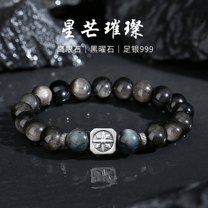Octagram Obsidian S925 Luxury Men’s Bracelet