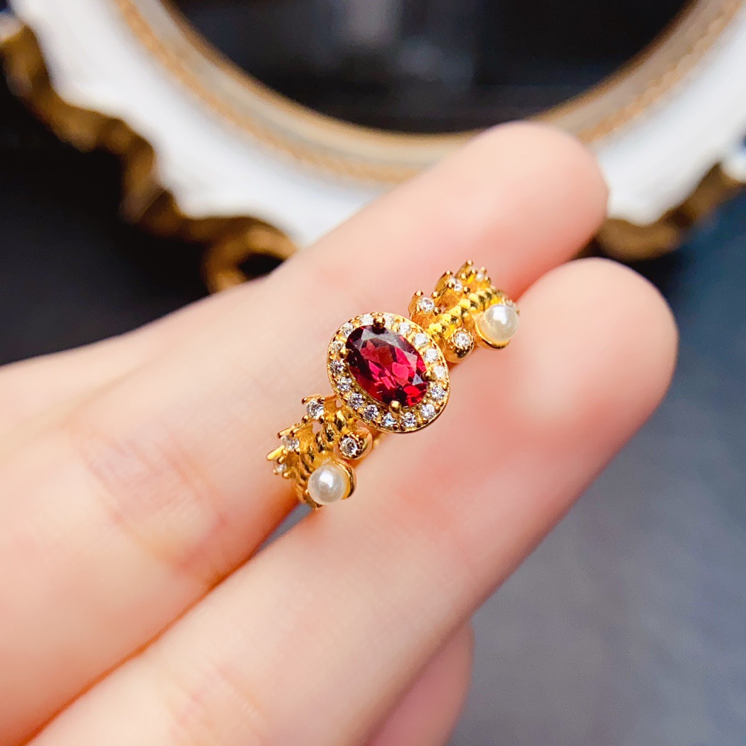 Popular natural garnet ring S925 silver inlaid center stone 4*6
