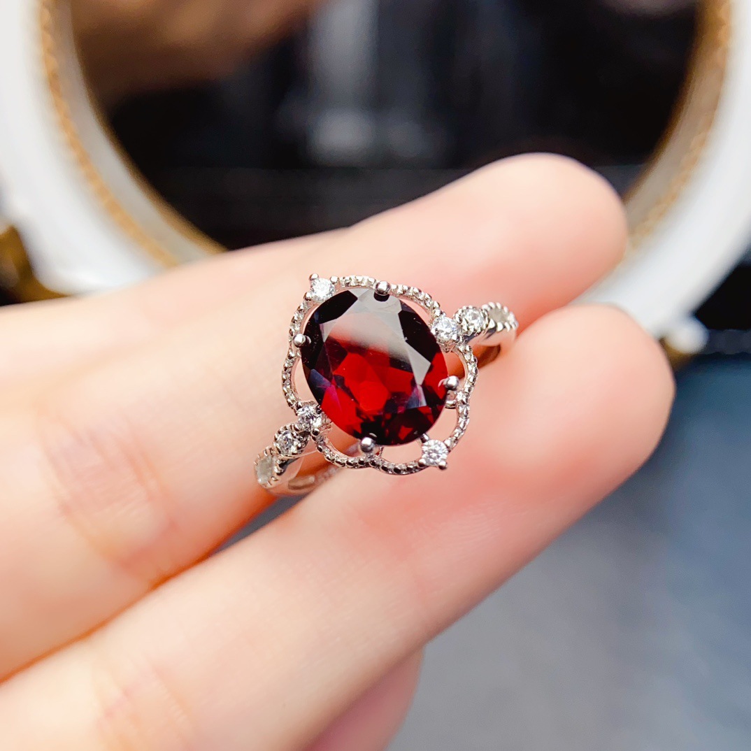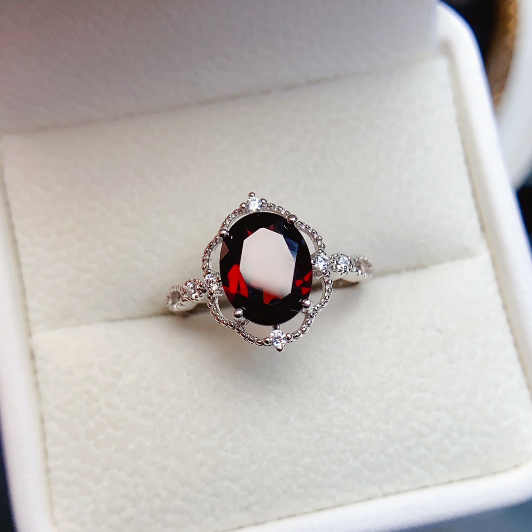 Natural purple garnet ( 0.32*0.39 inch) centerpiece, 925 silver inlaid, polished band, comfortable to wear, clear natural luster.