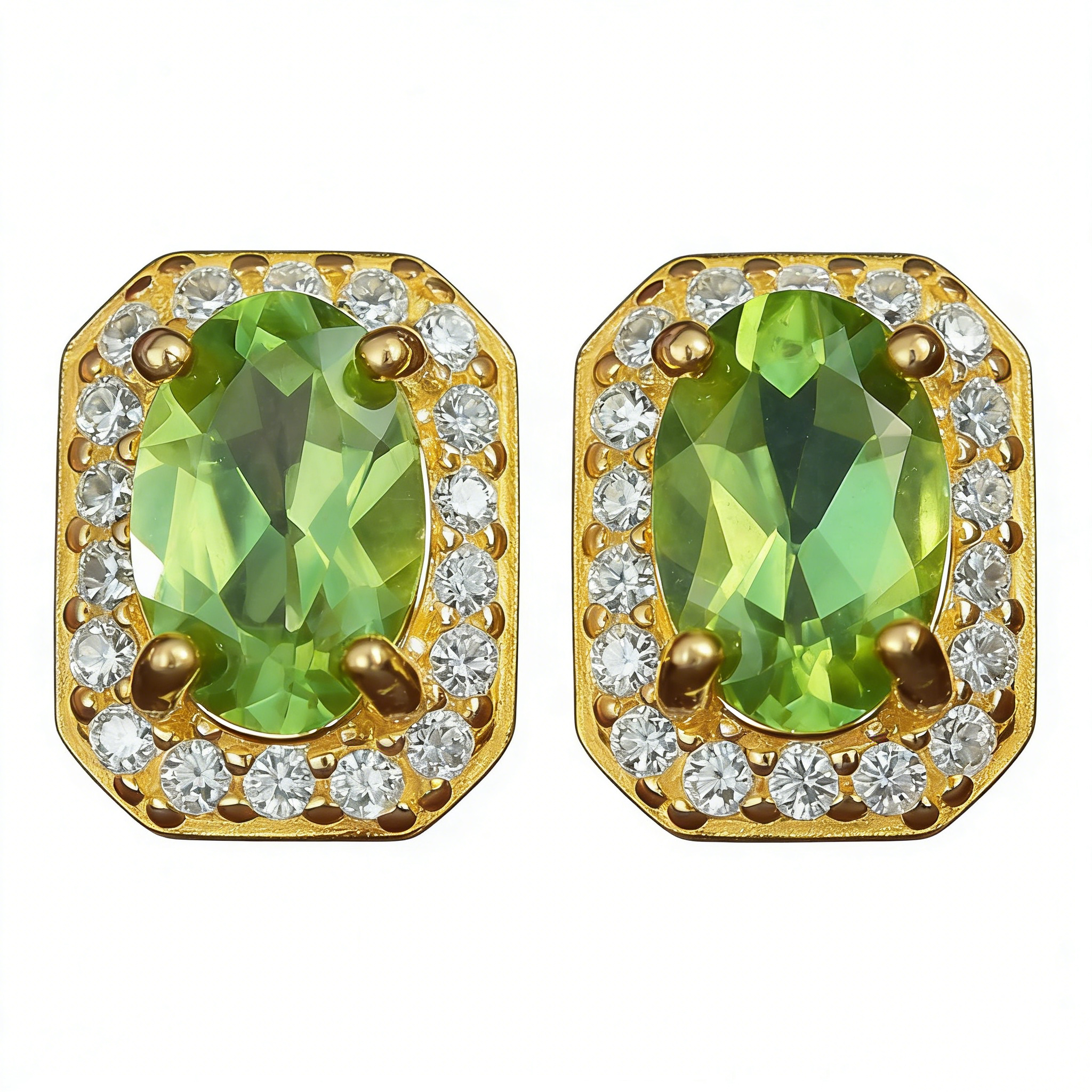 These vintage luxury stud earrings feature natural peridot as the main stone, set in high-quality S925 sterling silver. The natural peridot boasts a vivid, transparent green hue with brilliant fire, showcasing the unique luster of the gemstone. The S925 sterling silver material is hypoallergenic, resistant to tarnishing, and durable, ensuring long-lasting wear. The delicate halo setting with small accent stones enhances the overall sparkle of the earrings, creating a sophisticated and luxurious look without being overly ostentatious.