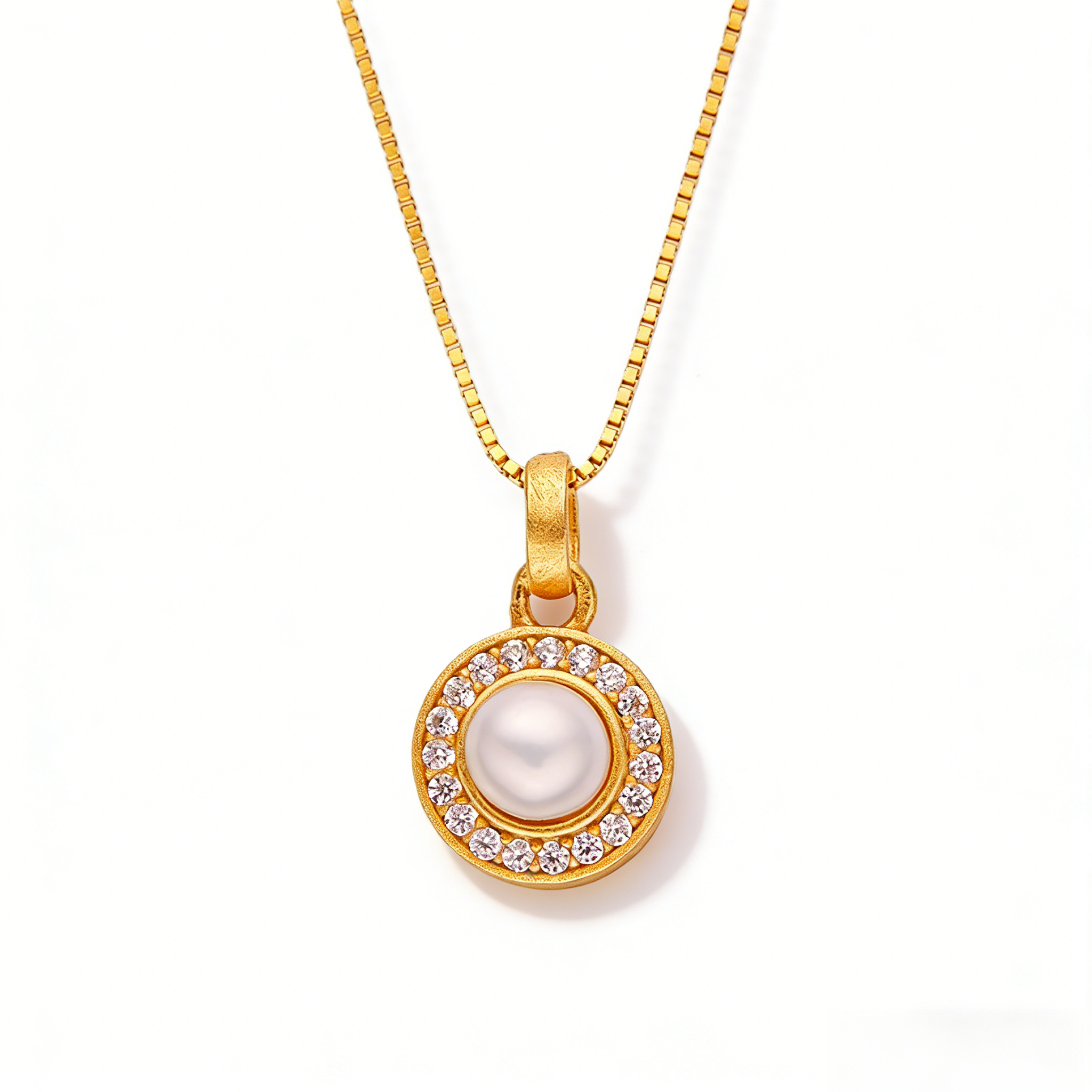 This necklace is crafted with 925 sterling silver as the base, adopting heritage gold craft with handmade engraving and filigree techniques. The pendant is inlaid with a natural freshwater pearl and carefully selected zircons, with retro patterns that showcase the luxurious texture of court style. The chain is an exquisite box chain, which fits the neck comfortably and is not easy to tangle. The surface of the pendant has a matte finish, which is the characteristic of heritage gold craft, showing a gentle and noble luster, and each detail is polished by hand, reflecting the artisan’s ingenuity.