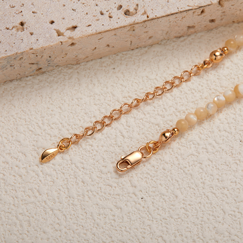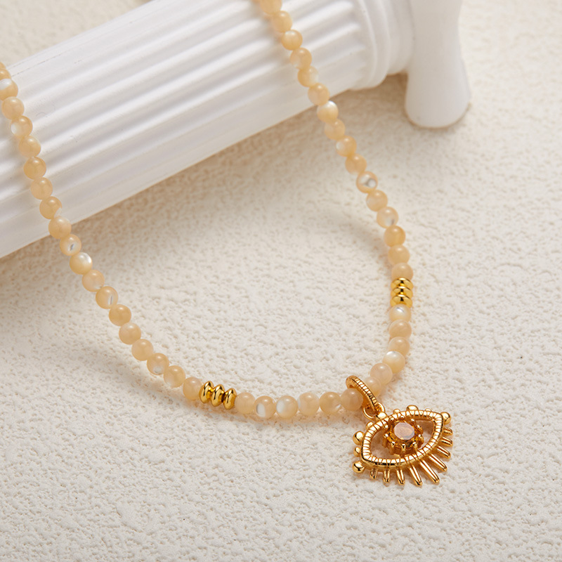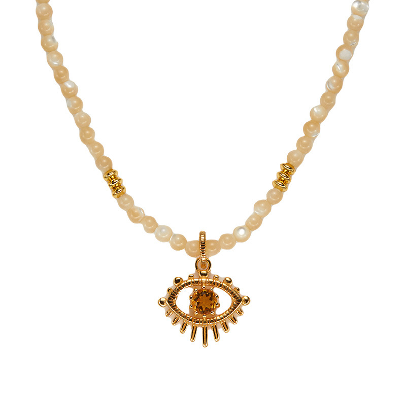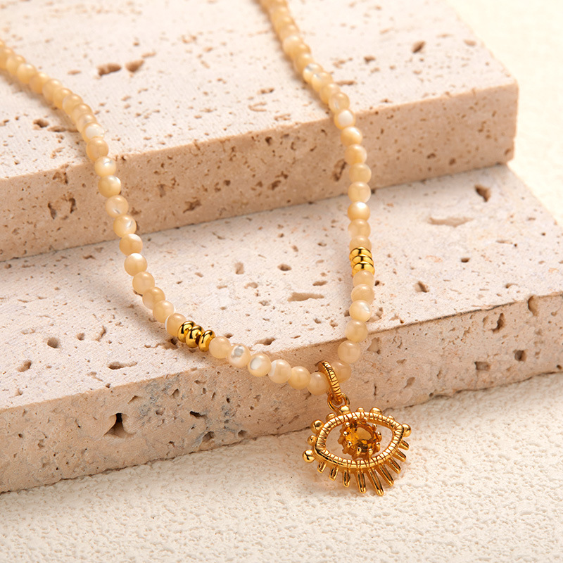 S925 Pure Silver Natural Yellow Shell and Yellow Crystal Gemstone Necklace for Women – Fashionable and Trendy, with Original Design of the Devil’s Eye Pendant