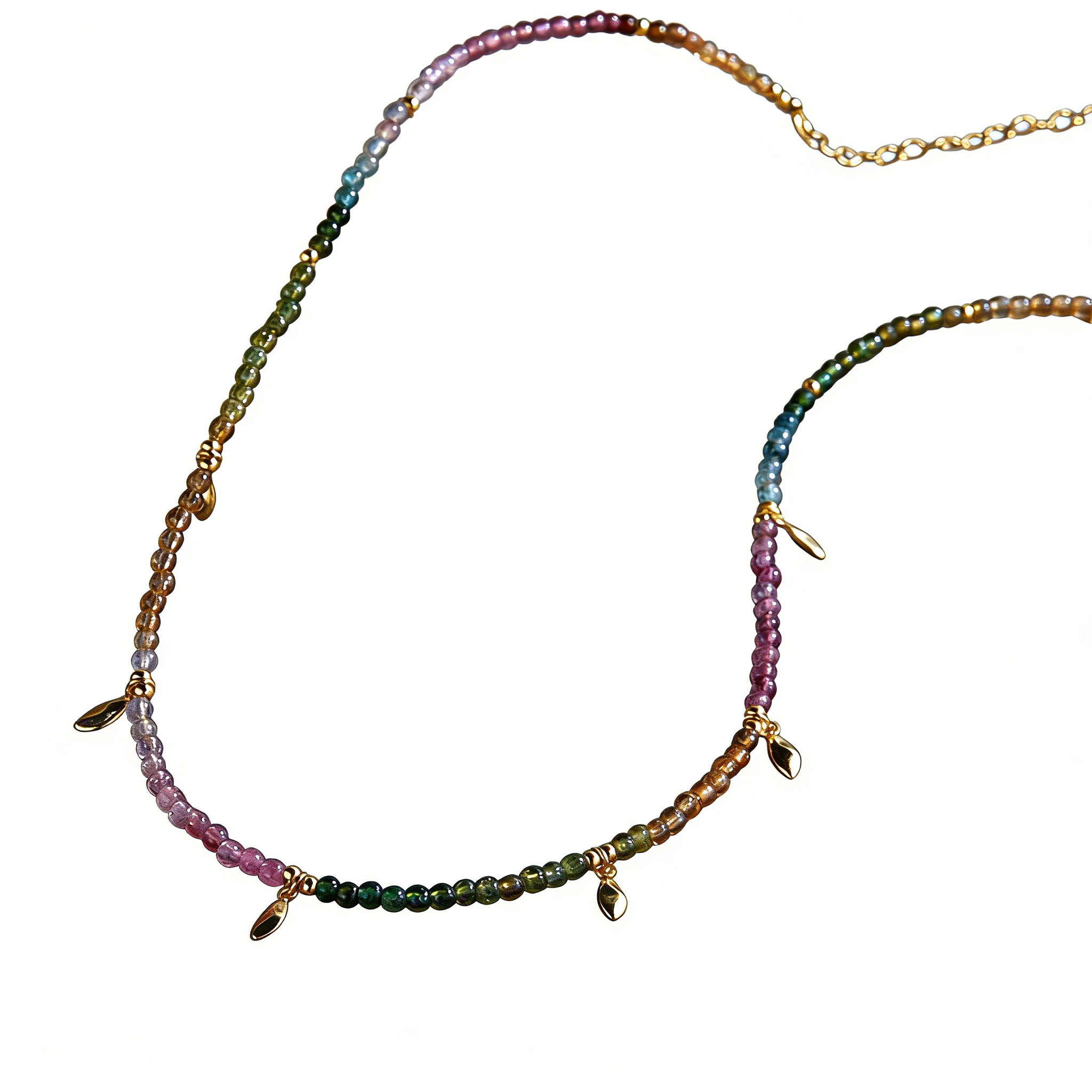 Handmade Colorful Natural Tourmaline Necklace & Bracelet – Bohemian Style