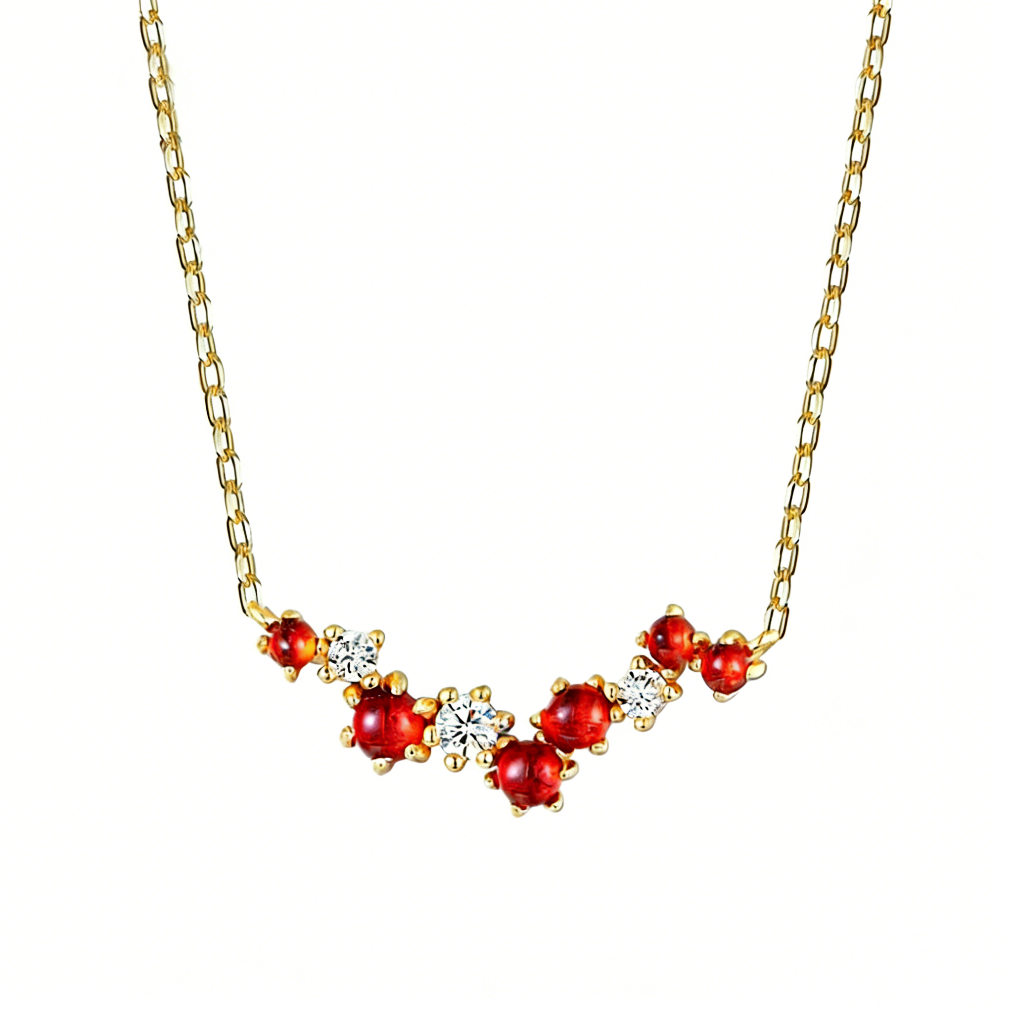 This delicate necklace features genuine natural red garnet as the centerpiece, paired with sparkling cubic zirconia accents to add a subtle, luxurious shimmer. Crafted from high-quality 925 sterling silver with a premium gold plating, it is hypoallergenic, nickel-free, and gentle on sensitive skin, built to last through your everyday wear without fading easily. The carefully arranged smile pendant sits perfectly along your collarbone, adding a touch of understated luxury to any look, without being overly flashy.