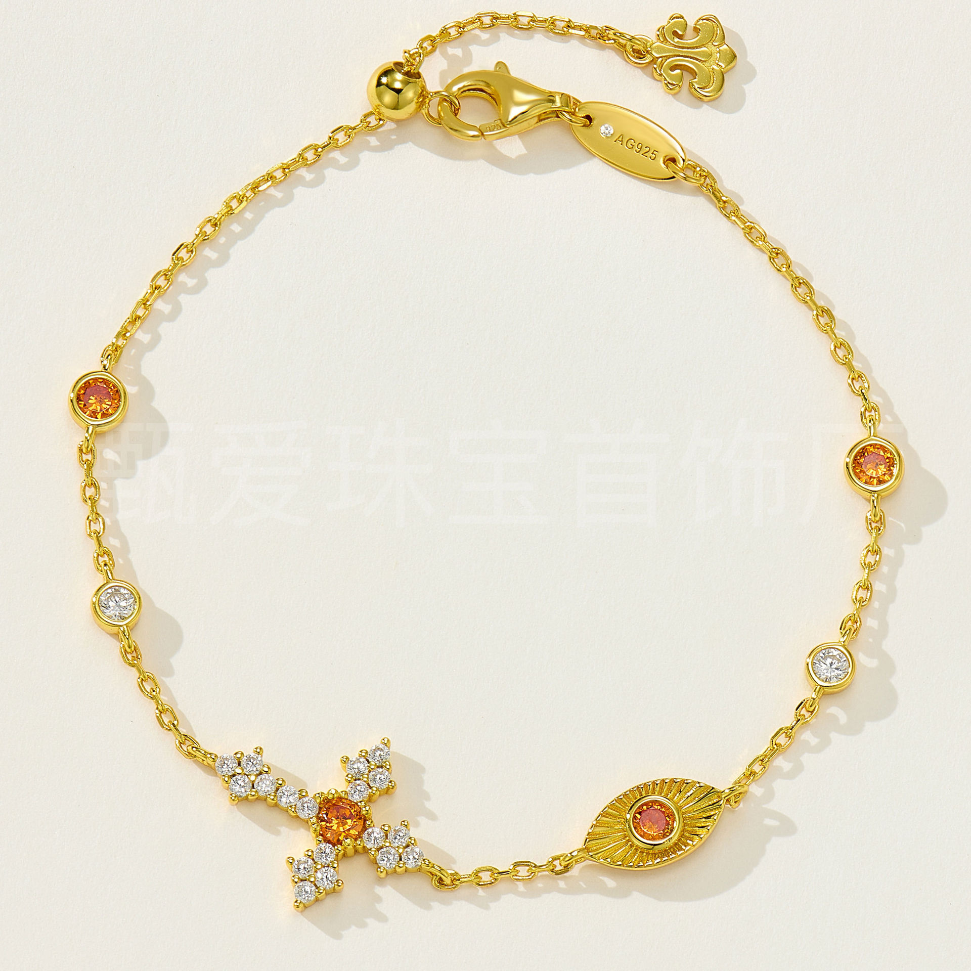 S925 Silver-Orange Light Cross Bracelet for Women – Boutique, Luxurious, Stackable with Zirconia