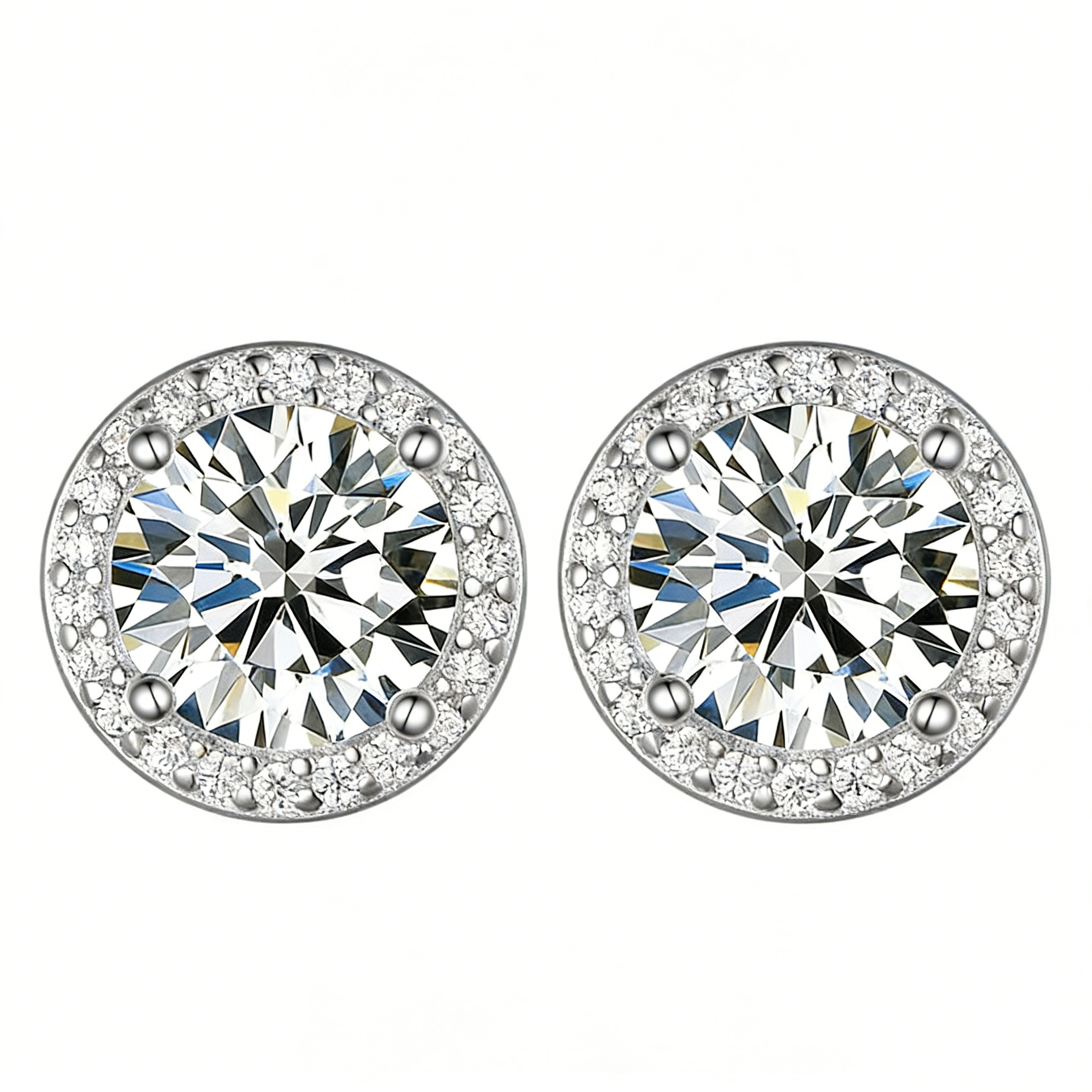Crafted from high-quality S925 silver, these stud earrings feature a round moissanite stone as the centerpiece, surrounded by a delicate halo of tiny moissanite accents, enhancing the overall brilliance. The moissanite stone is carefully cut to maximize its fire and sparkle, rivaling the beauty of a diamond at a more accessible price point. The hypoallergenic S925 silver ensures comfort for sensitive skin, and the secure push-back closure keeps the earrings in place all day long.
