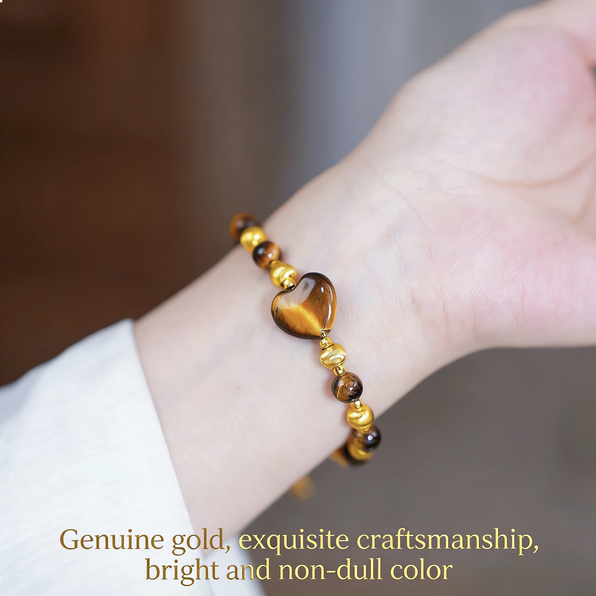 Sand gold pops and jumps, beads cat’s eye transfer beads attract fortune, tiger’s eye stone love bracelet, women’s stacking wears high-end sense of sand gold