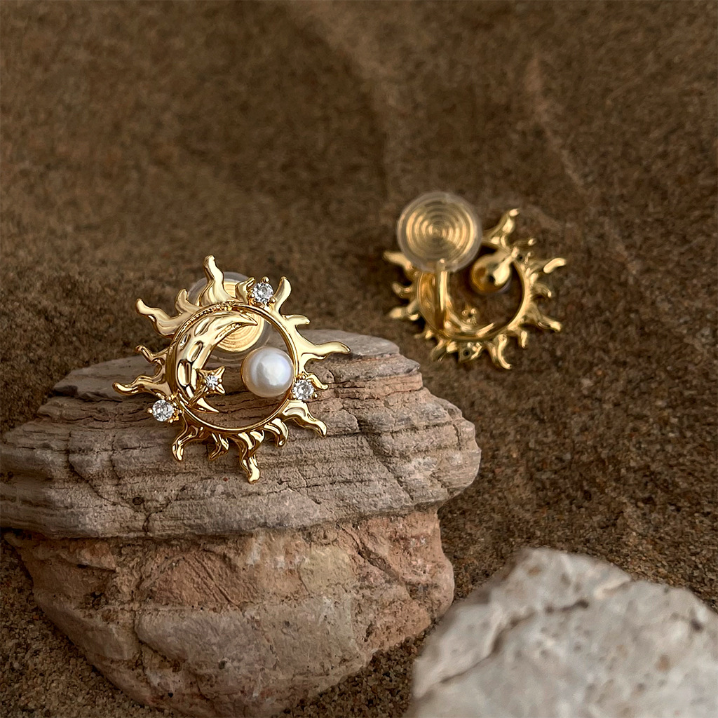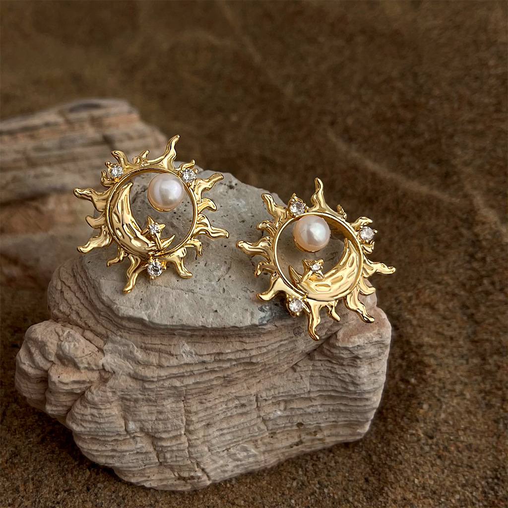 Be the first to review “Sun and Moon Original thick plated 18K real gold freshwater pearl zircon earrings retro literary and artistic light luxury 925 silver needle earrings” Cancel reply